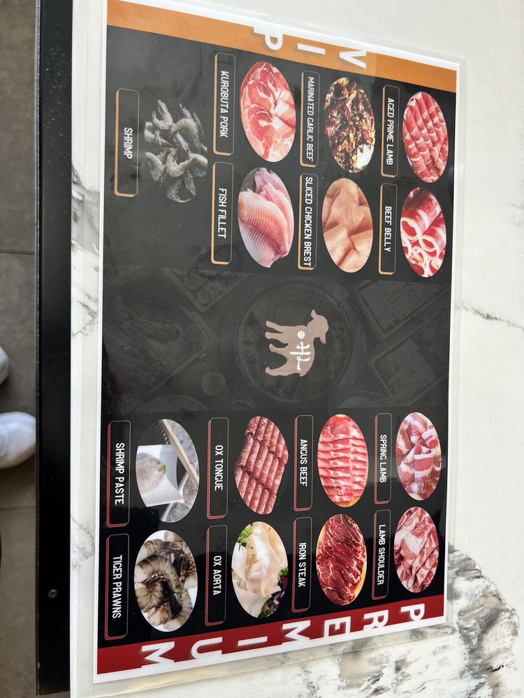 The menu boasts an impressive selection of premium meats, including Australian Wagyu Beef, Aged Prime Lamb, and Marinated Garlic Beef, all sliced to perfection. Fresh vegetables and a sauce bar enhance the customizable hot pot experience, making it ideal for gatherings.